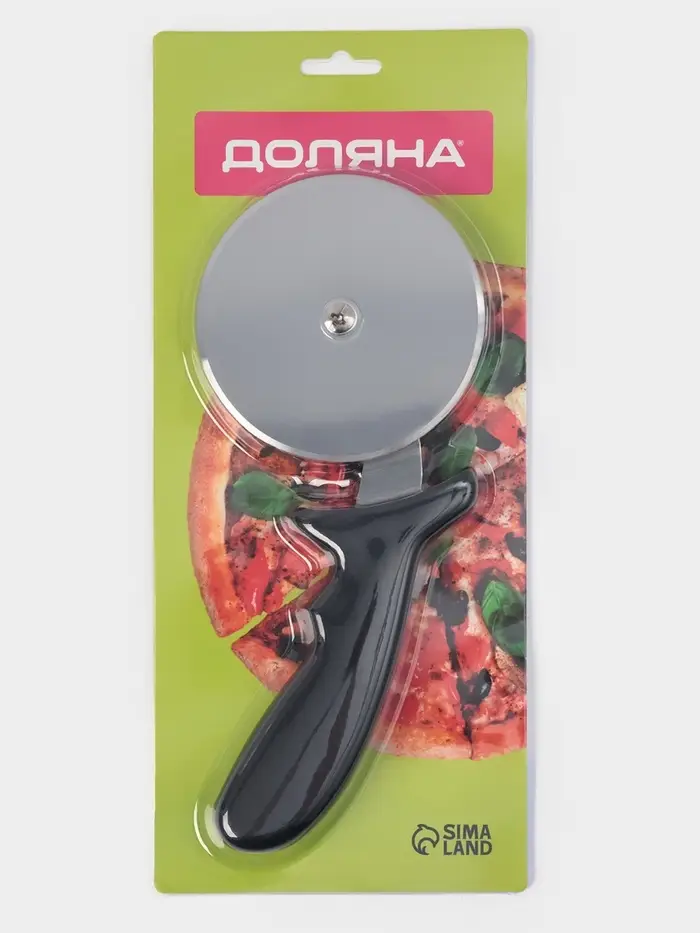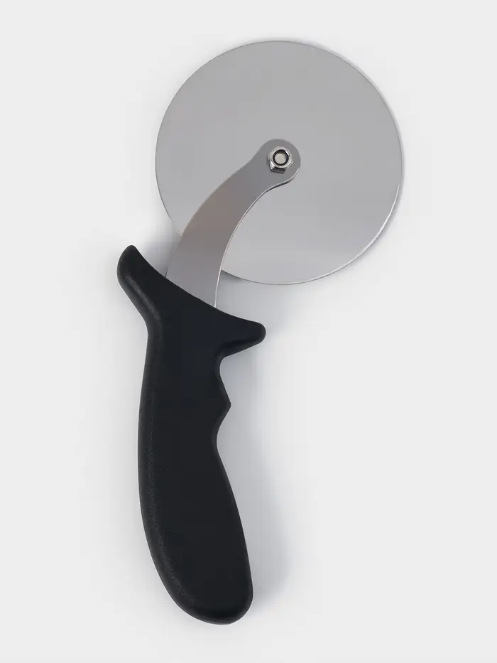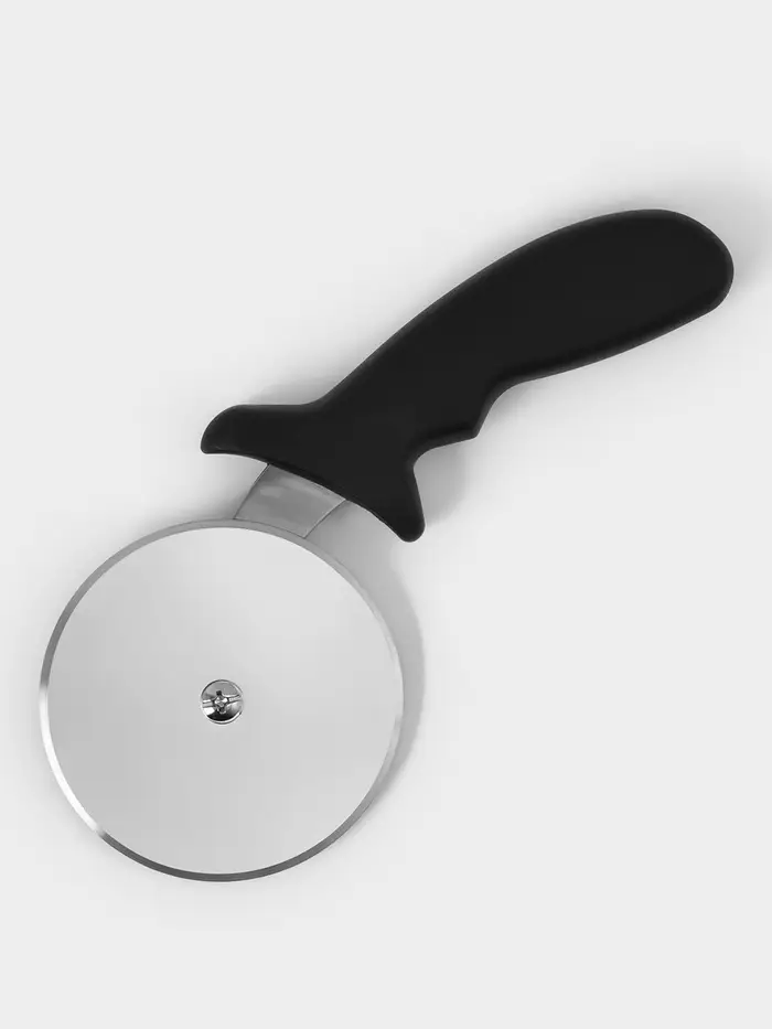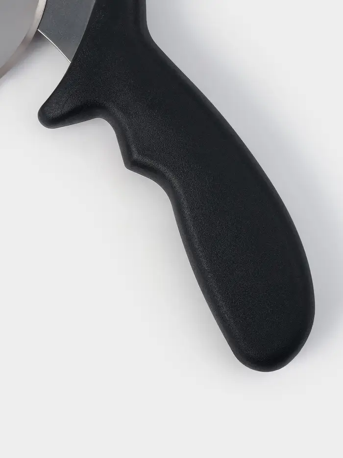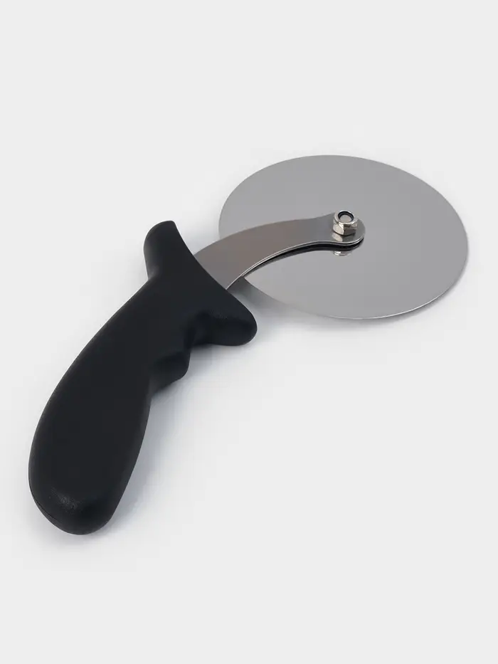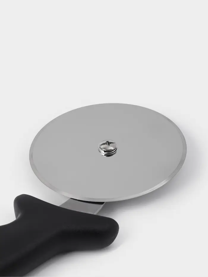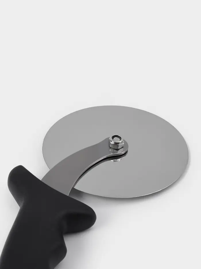 Нож для пиццы и теста с круглым лезвием предназначен для нарезки пиццы, лаваша, тонкого теста и лепёшек. Модель оснащена одним лезвием из нержавеющей стали диаметром 10 см, толщина режущей кромки — 1 мм. Ручка выполнена из чёрного пластика.