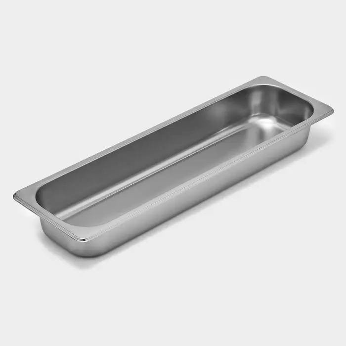 Гастроёмкость 2/4 из нержавеющей стали — великолепный аксессуар для профессиональной кухни. Она обладает превосходными антикоррозийными свойствами, обеспечивая долговечность и надёжность в использовании. Гладкая внутренняя поверхность гарантирует лёгкость очистки и гигиеничность. Благодаря таким параметрам, она идеально подходит для разнообразных кулинарных процессов, включая заморозку, хранение и приготовление продуктов.