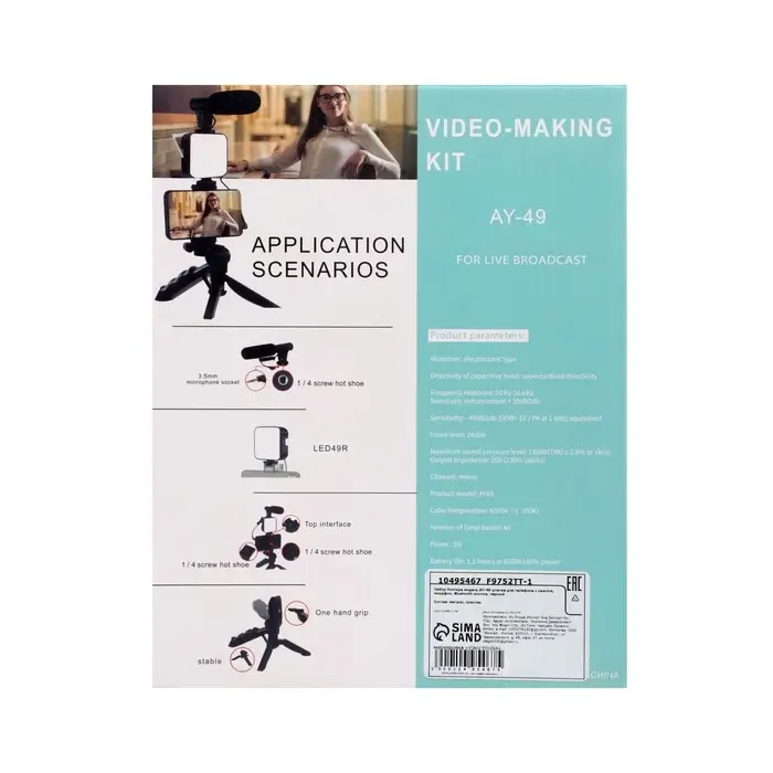Набор блогера AY-49, штатив для телефона с лампой, микрофон, Bluetooth кнопка, чёрный