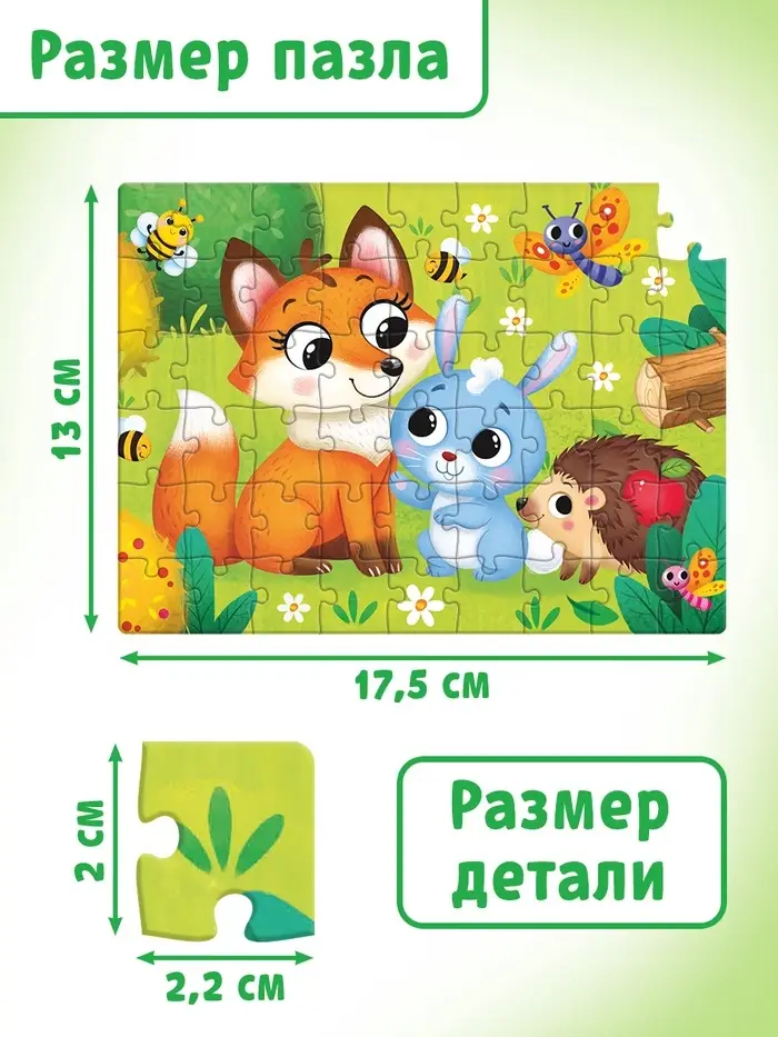 Этот набор станет отличным подарком для детей, которые только начинают знакомиться с пазлами. Он подходит для семейного досуга, развивающих занятий в детском саду или дома. А благодаря универсальному дизайну, набор понравится как мальчикам, так и девочкам.