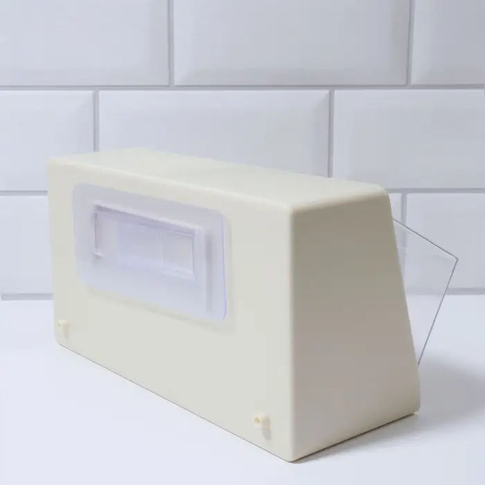 - Удобное крепление: органайзер легко монтируется на стену с помощью клеевых пластин, которые не оставляют следов и не повреждают поверхности.