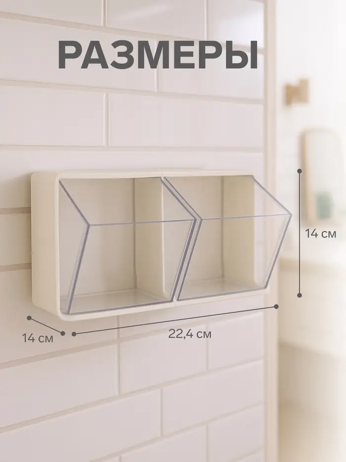 Органайзер настенный, 2 секции, 22.5×14×14 см, молочный, прозрачный