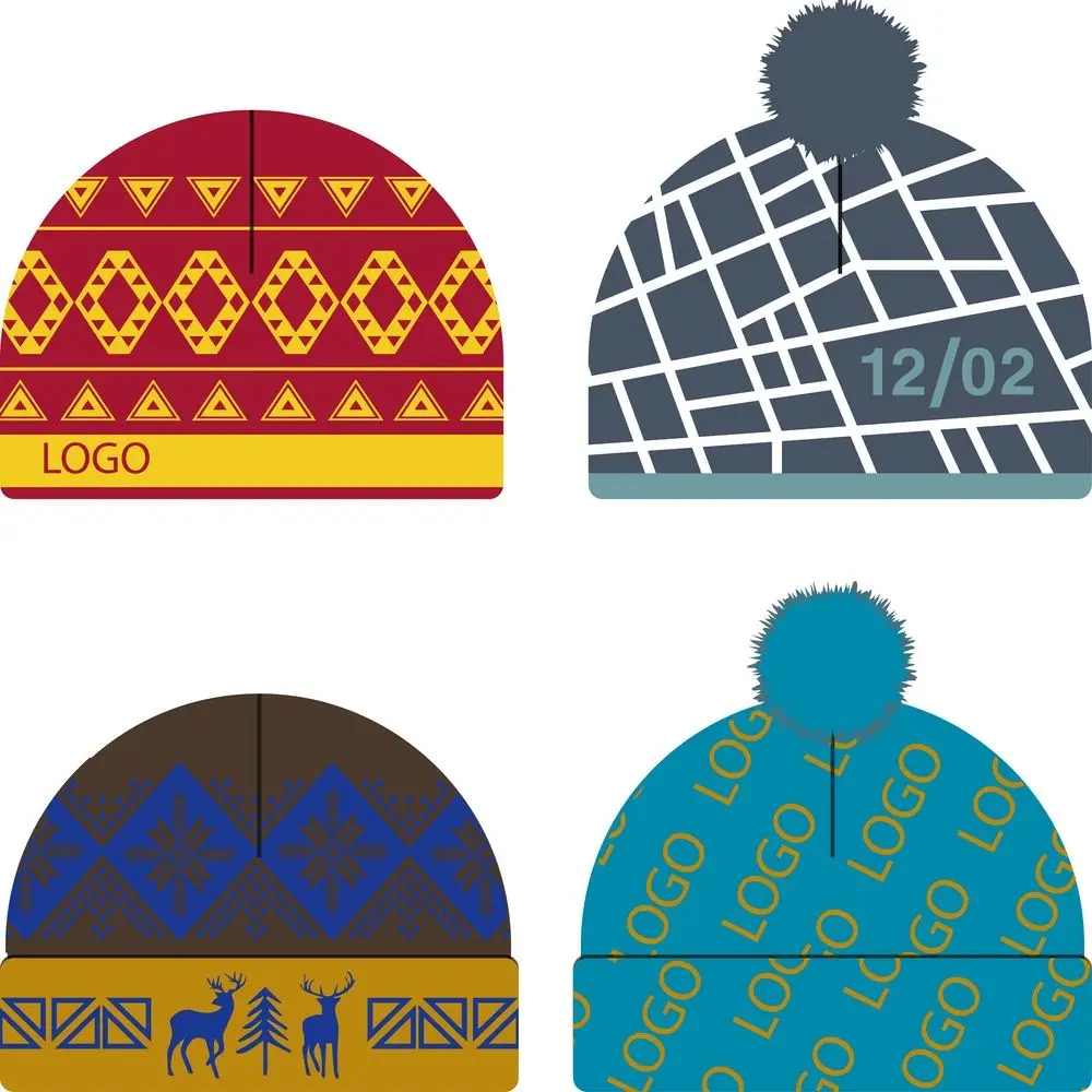 Модель: классическая однослойная шапка с жаккардовым узором в 2-3 цвета.