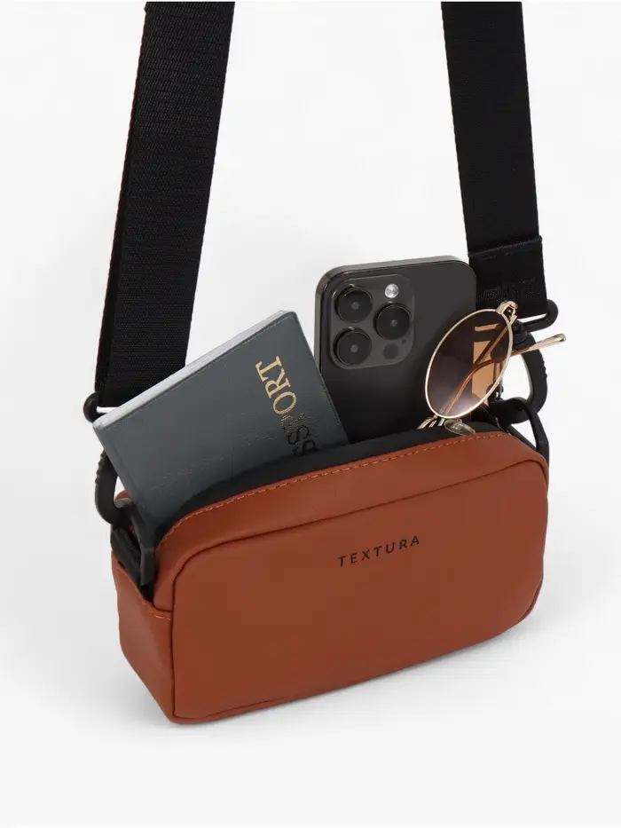 Сумка женская кросс-боди TEXTURA на молнии, 19×6×10.5 см, рыжая