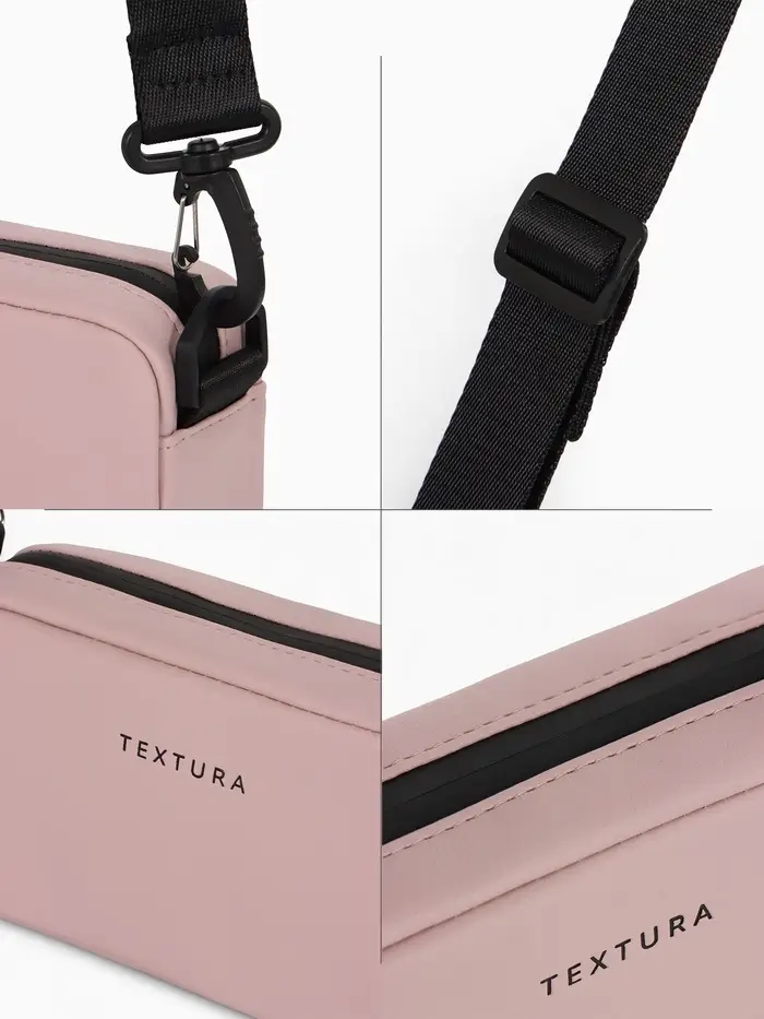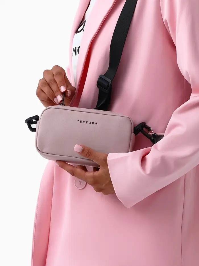 Откройте для себя идеальную спутницу для городских приключений и элегантных выходов — сумку от TEXTURA в розовом цвете.
