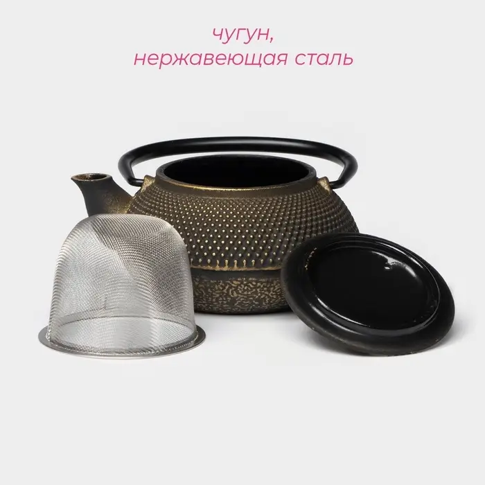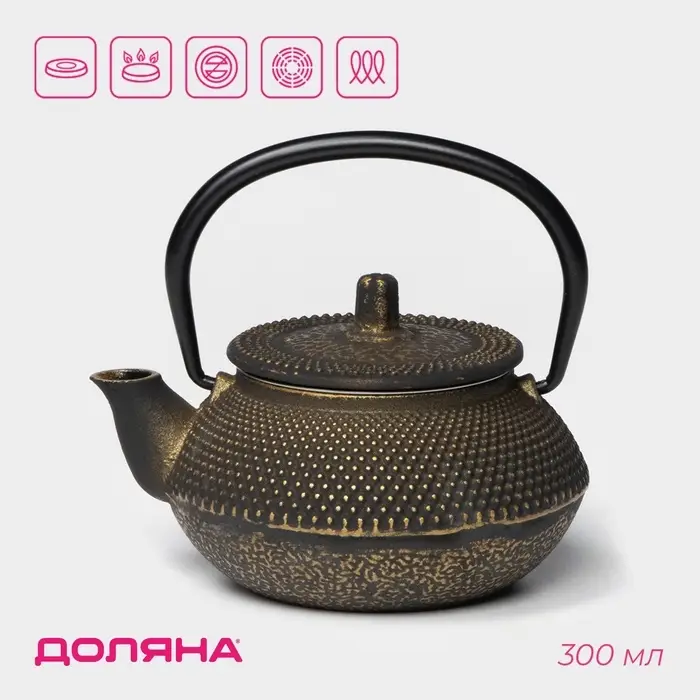 Чайник Доляна «Восточная ночь. Золото», 300 мл, с ситом, чугун, индукция, золотистый
