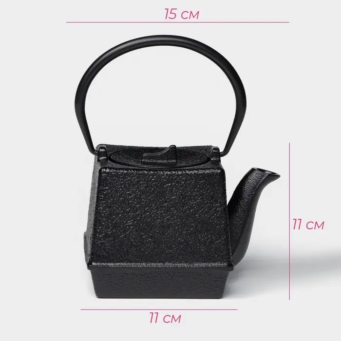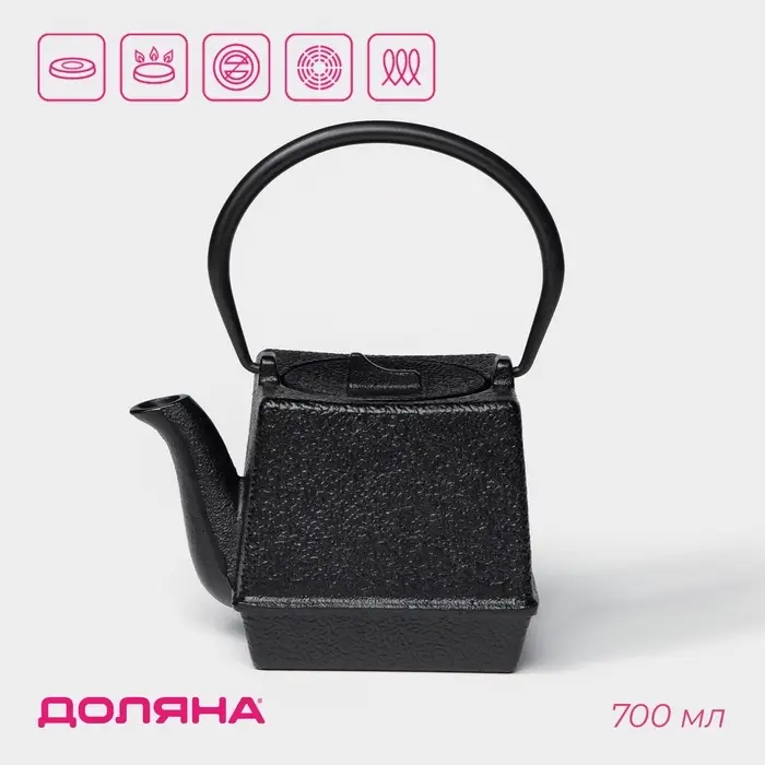 Чайник Доляна «Чёрный тигр», 700 мл, с ситом, эмалированное покрытие внутри, индукция, чугун, чёрный