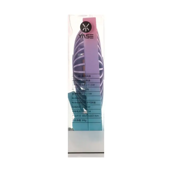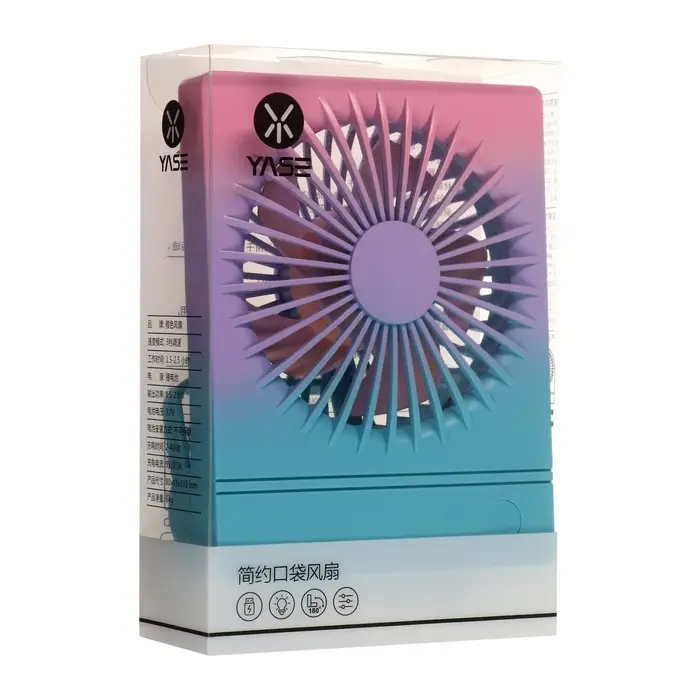 Портативный вентилятор YS2202B — стильное и функциональное устройство, обеспечивающее комфортную прохладу в любое время. Его градиентная расцветка в розовых и сиреневых тонах придаёт особую привлекательность, делая его не только полезным, но и модным аксессуаром.