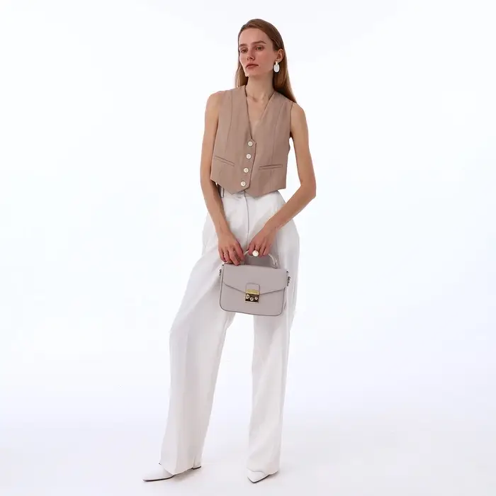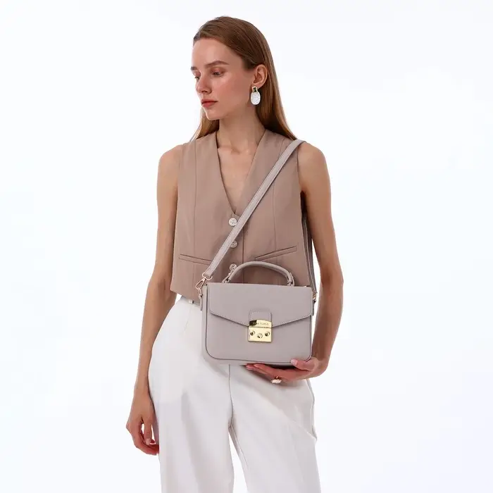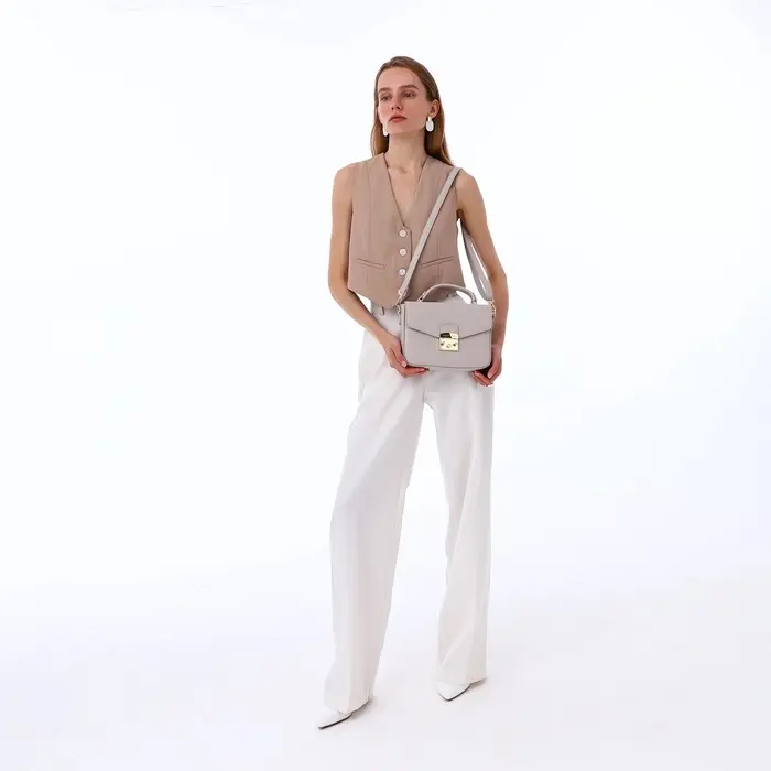 - Изысканный дизайн: сочетание бежевого цвета и золотистой фурнитуры делает сумку универсальной для любого образа.