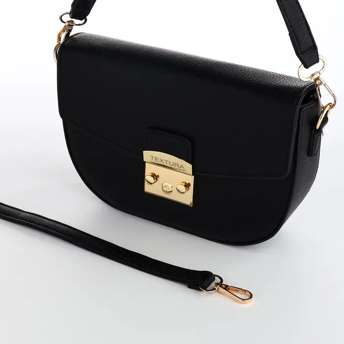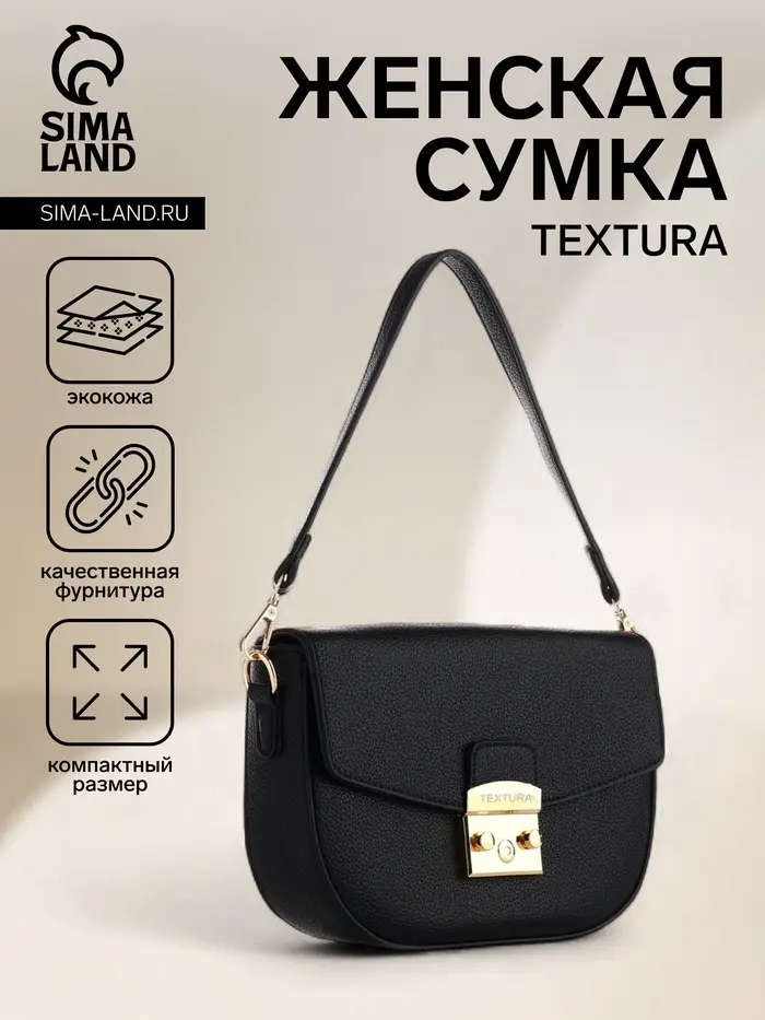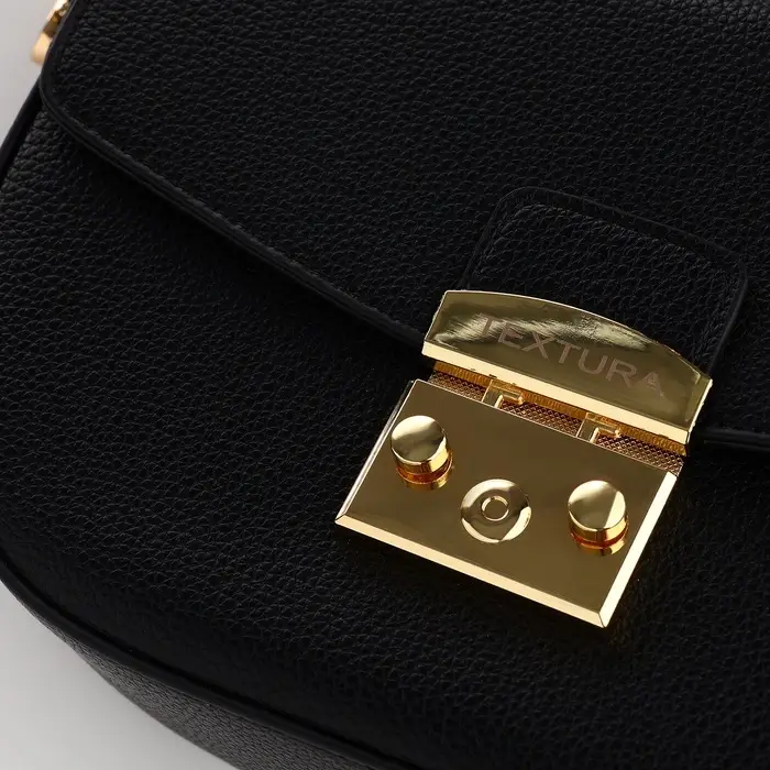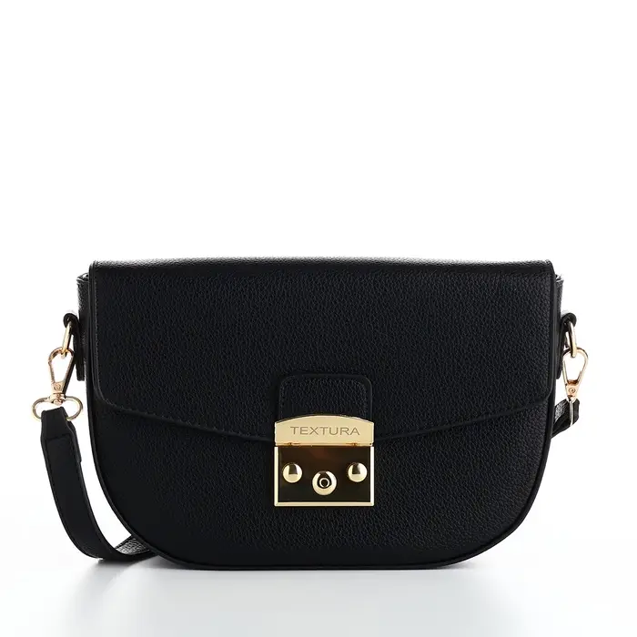 Сумка женская мессенджер TEXTURA на клапане, 23×6×15 см, чёрная