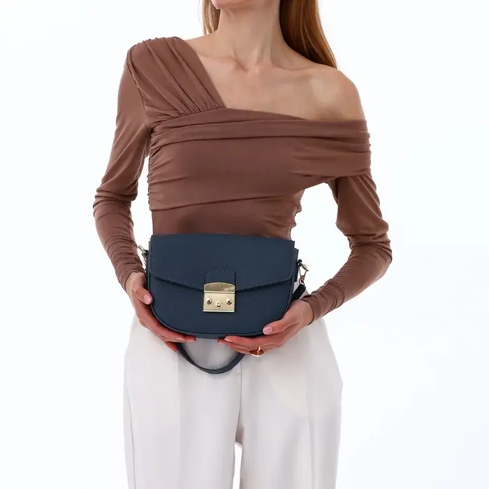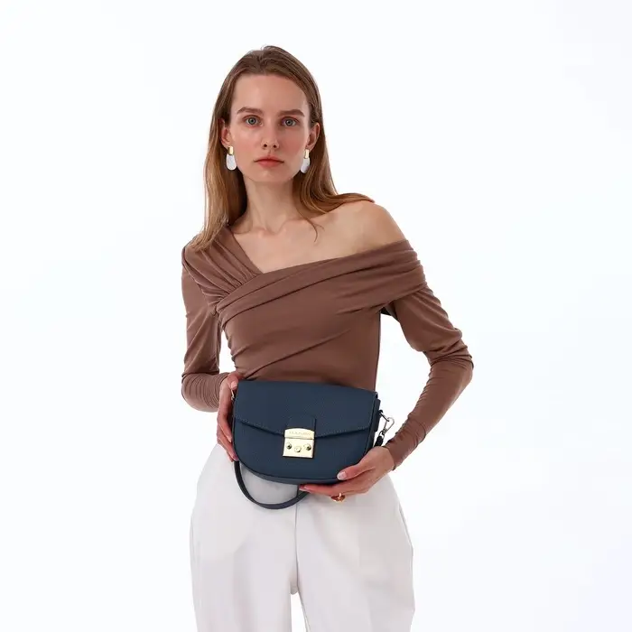 - Изысканный дизайн: сочетание синего цвета и золотистой фурнитуры делает сумку универсальной для любого образа.