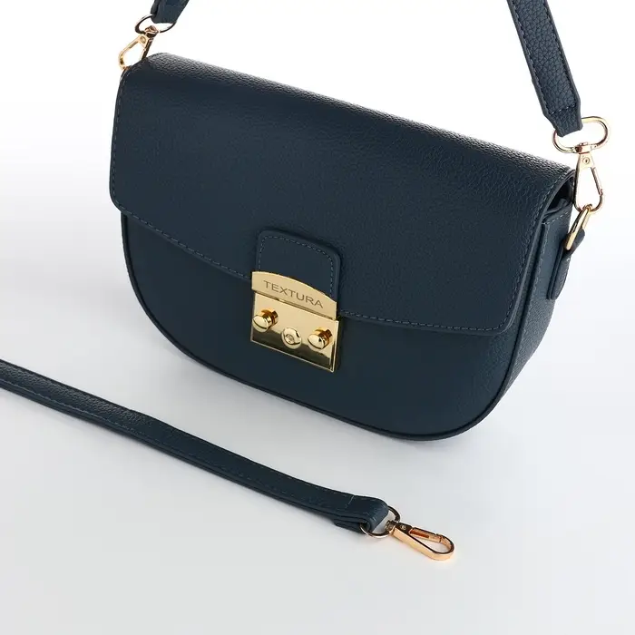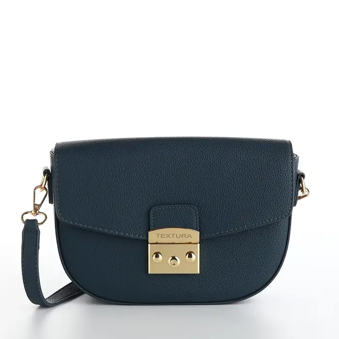 Сумка женская мессенджер TEXTURA на клапане, 23×6×15 см, синяя