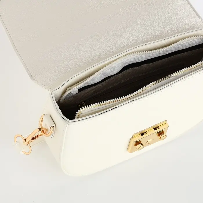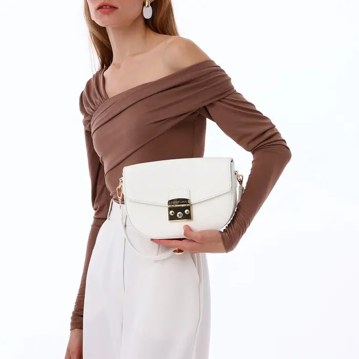 - Изысканный дизайн: сочетание белого цвета и золотистой фурнитуры делает сумку универсальной для любого образа.