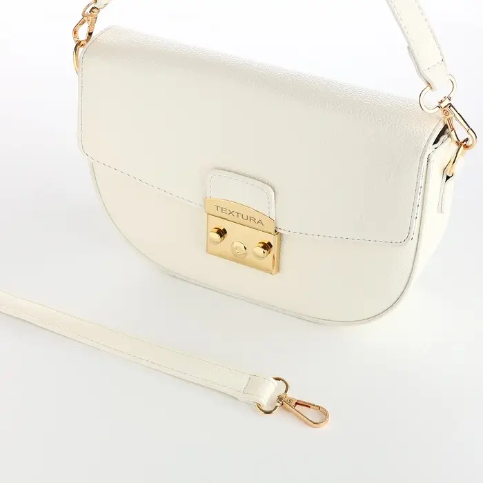 Сумка женская мессенджер TEXTURA на клапане, 23×6×15 см, белая