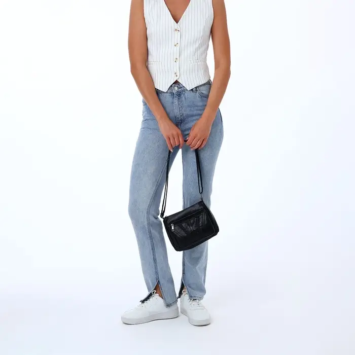 Сумка женская, кросс-боди, средний размер, на молнии, 20×8.5×15 см, чёрная