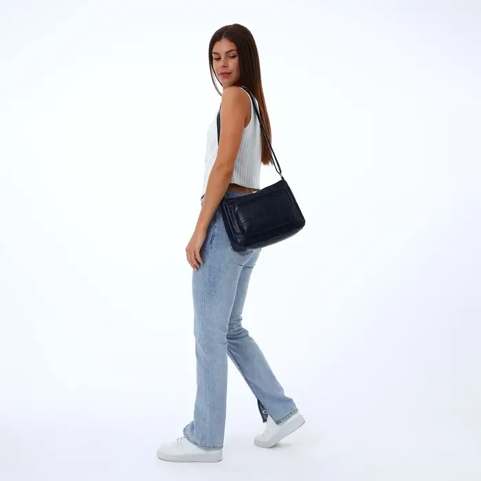 Сумка женская кросс-боди на молнии, 28×10×20 см, однотонная, тёмно-синяя