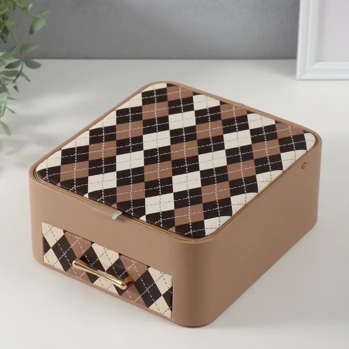 Шкатулка для украшений «Клетка», с зеркалом, искусственная кожа, бежевая, 20×22.5×9.5 см