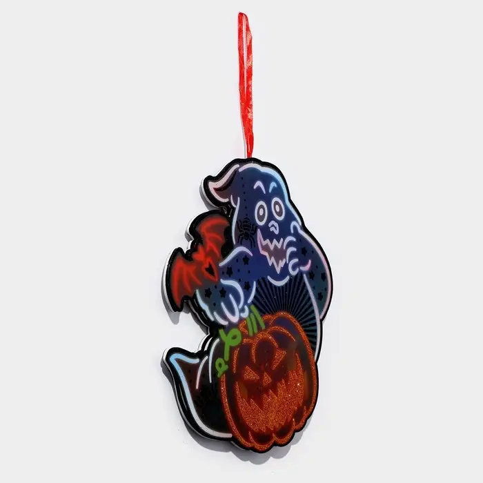 Декоративная светящаяся подвеска - украшение «Привидение и тыква», 30.5×29.5 см