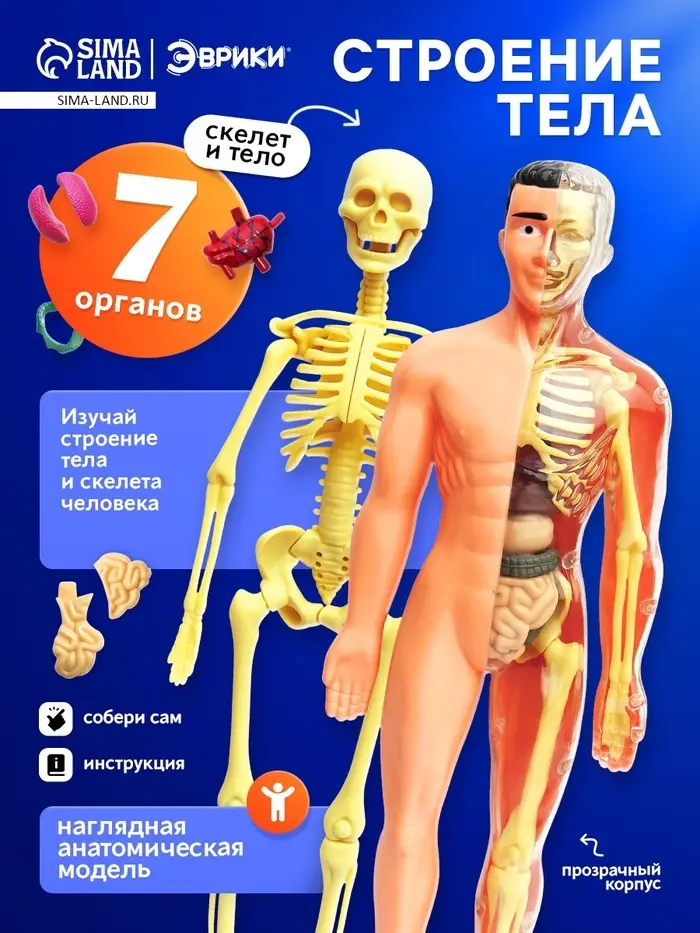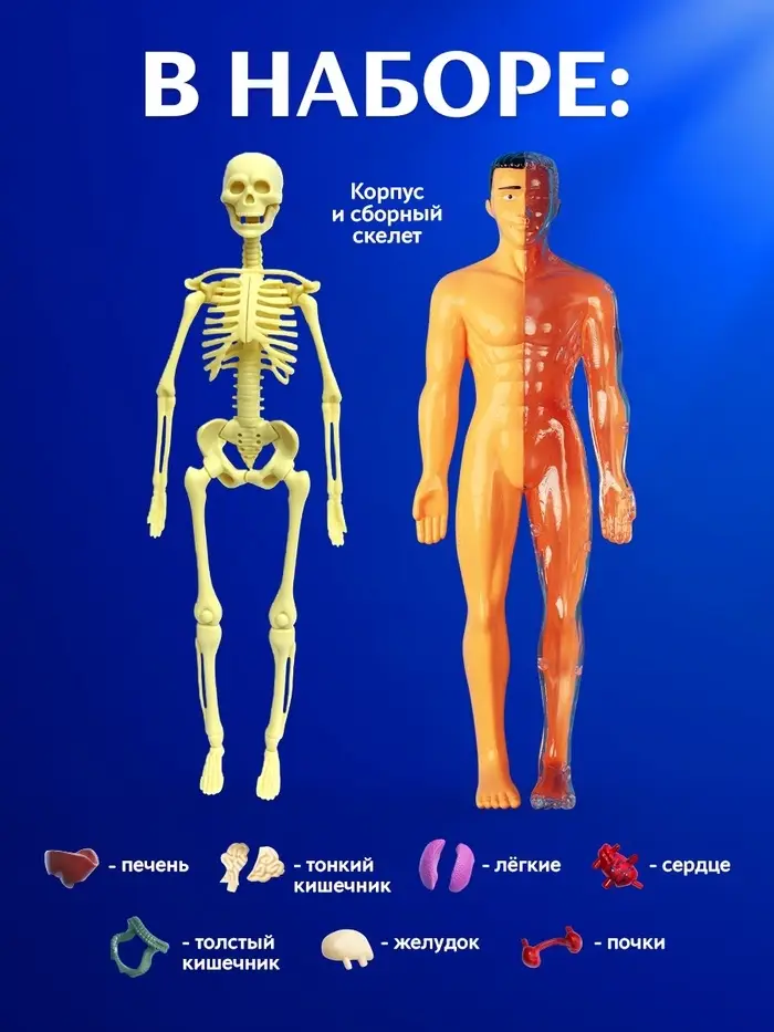 Соберите модель человеческого тела со скелетом и внутренними органами и проведите вместе с ребёнком настоящую исследовательскую работу. Благодаря входящей в комплект брошюре юный учёный сделает много удивительных открытий в области анатомии!