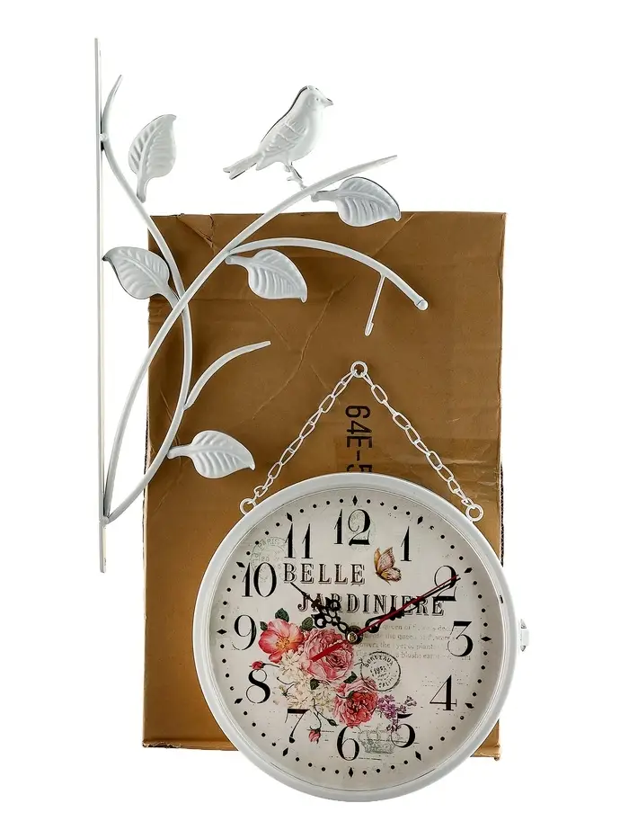 Часы настенные двусторонние «Птичка на ветке», подвес, d=23 см, белые
