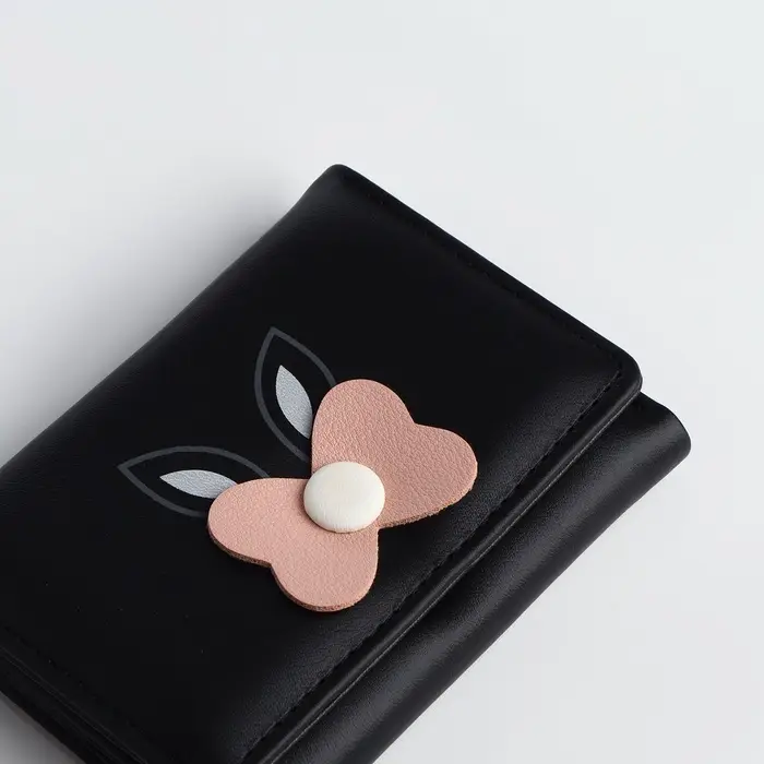 Кошелёк «Цветочек», маленький, для девочки, на кнопке, чёрный