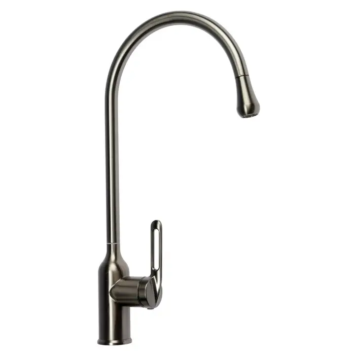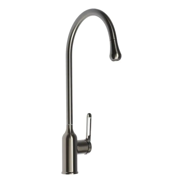 Однорычажный смеситель «Капелька», графит, 26 см — смеситель для кухни с высокой дугой. Форма «капелька», высота излива 26 см и матовое графитовое покрытие.