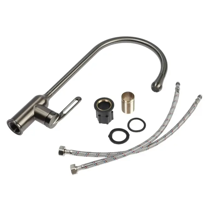 Смеситель для кухни ZEIN Z3742, «капелька», однорычажный, высота излива 26 см, графит