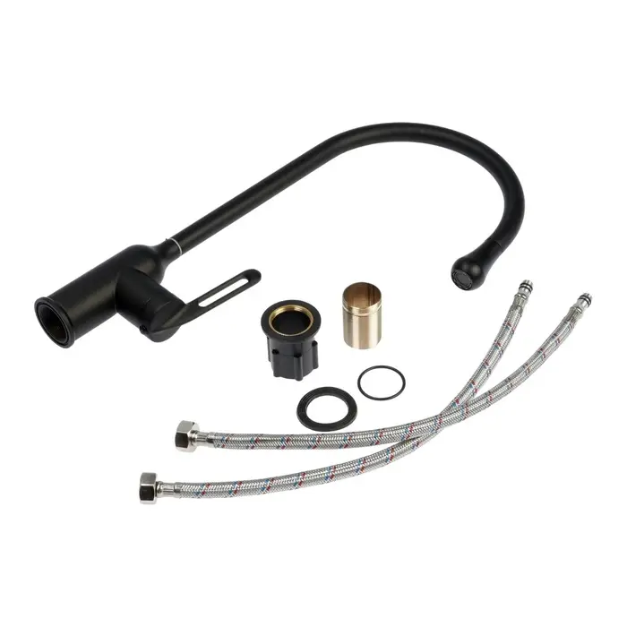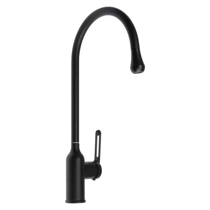 Однорычажный смеситель «Капелька», черный, 26 см — смеситель для кухни с высокой дугой. Форма «капелька», высота излива 26 см и матовое черное покрытие.