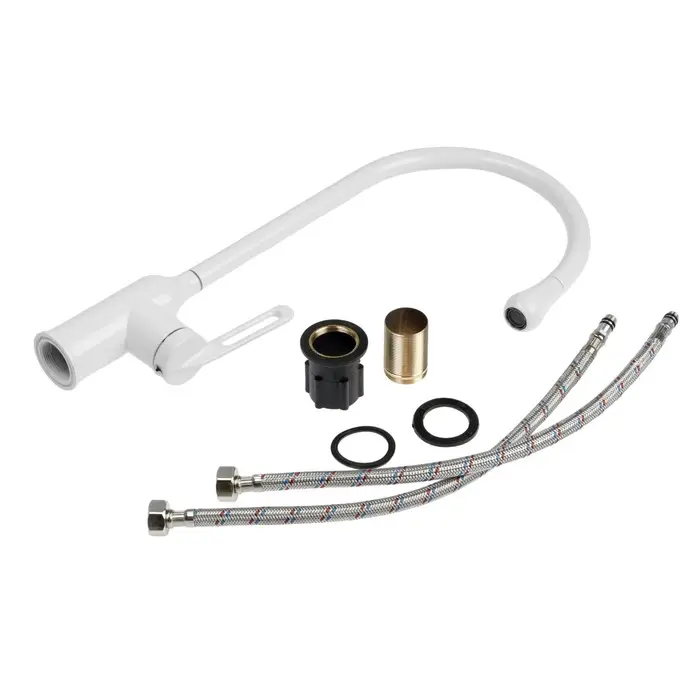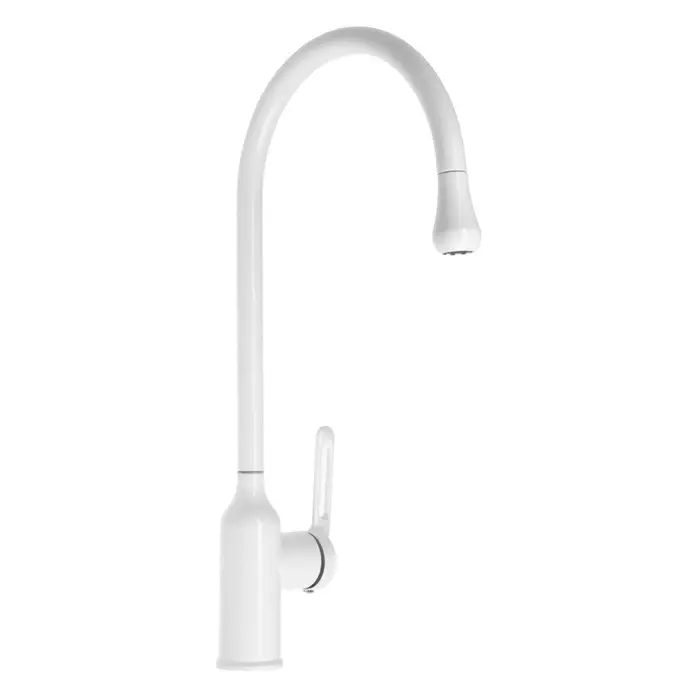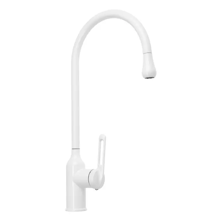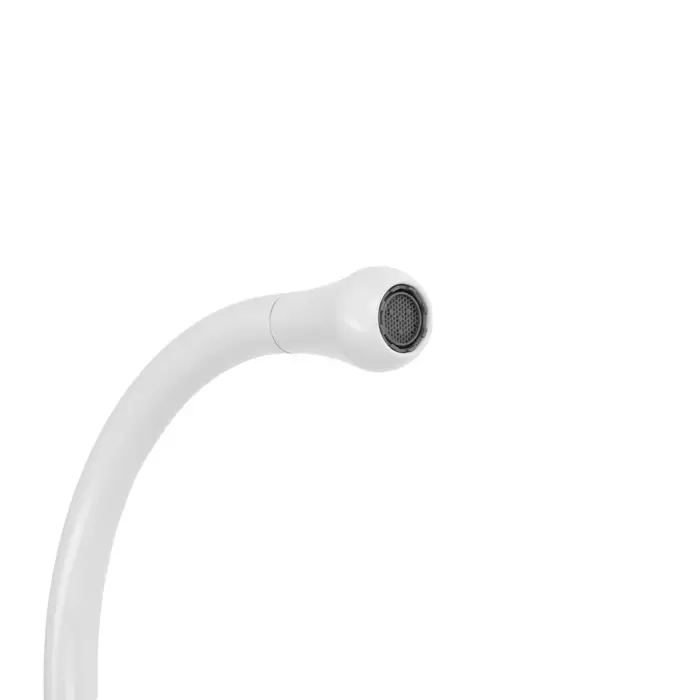 Однорычажный смеситель «Капелька», белый, 26 см — смеситель для кухни с высокой дугой. Форма «капелька», высота излива 26 см и белое покрытие.