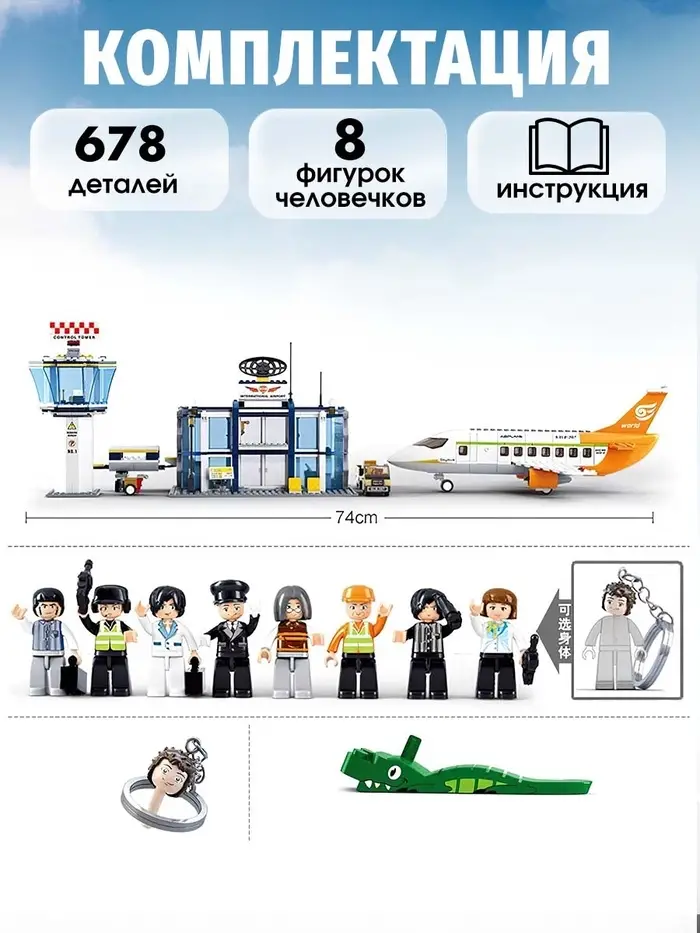 - В комплекте 678 деталей, из которых можно собрать различные элементы аэропорта.