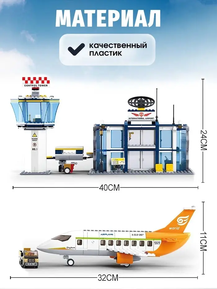 Сборка конструктора способствует развитию полезных навыков: мелкой моторики, логического мышления и способности к решению задач. Ребёнок сможет самостоятельно экспериментировать с дизайном и конструкцией, создавая уникальные модели аэропорта.