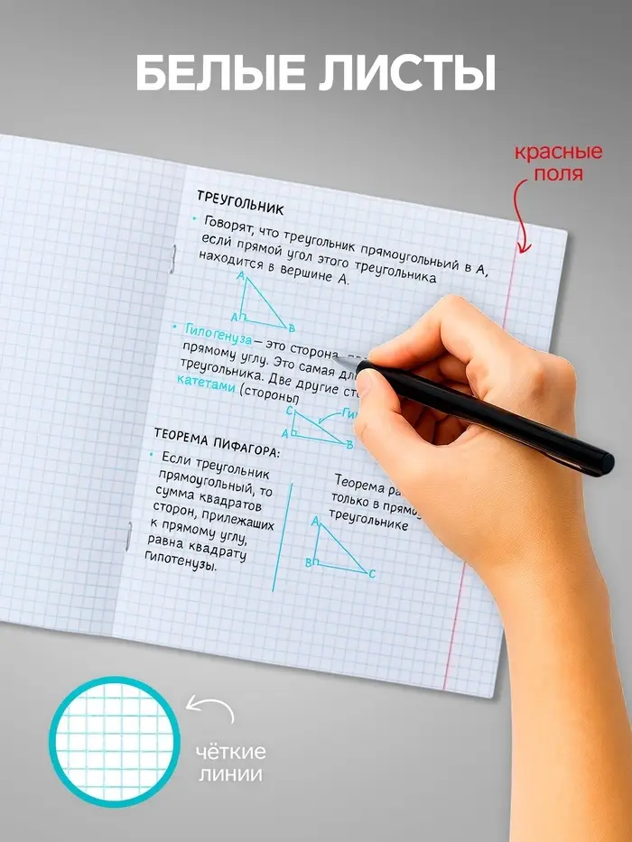 - Серые листы в клетку: Мягкий тон страниц снижает нагрузку на глаза, а клетка помогает аккуратно структурировать записи. Листы с высокой белизной (95-100%) обеспечивают четкость и комфорт при письме.