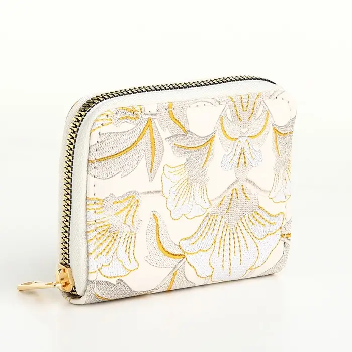 Этот белый кошелёк с вышивкой — элегантный спутник для повседневной жизни. Он создан, чтобы держать ваши вещи в идеальном порядке, сохраняя при этом стильный и женственный вид. Три отделения и внутренний карман на молнии для мелочи помогают легко распределить купюры, карты и монеты. Узорная вышивка с цветочным мотивом делает аксессуар уникальным, а практичная искусственная кожа — долговечным.