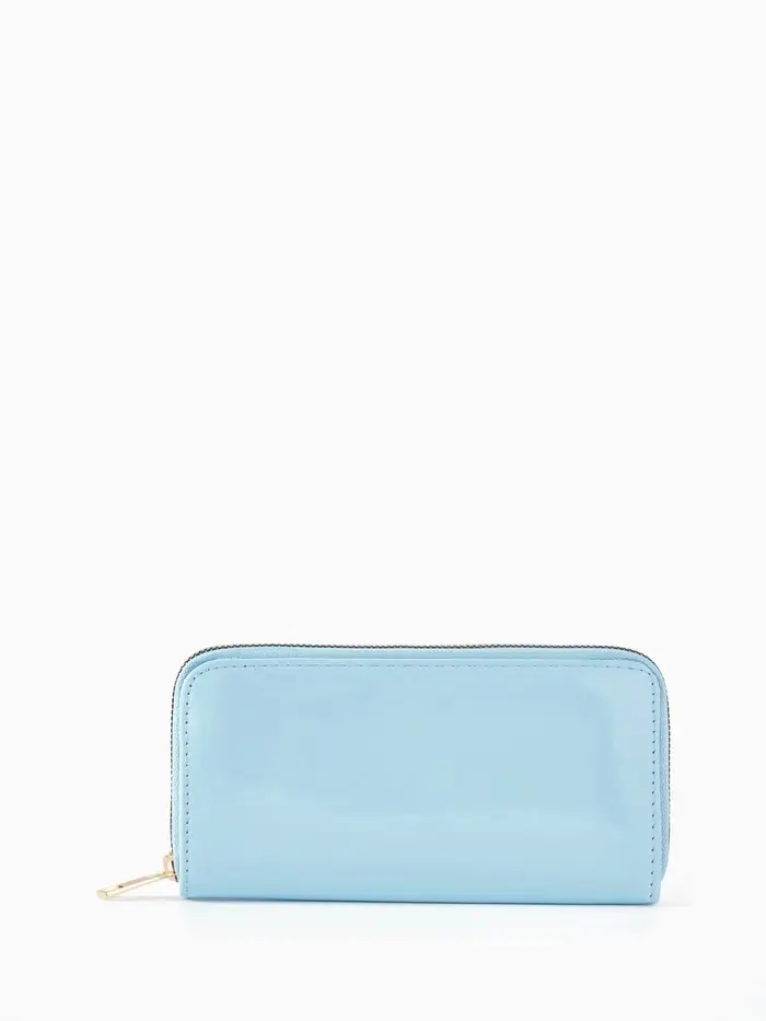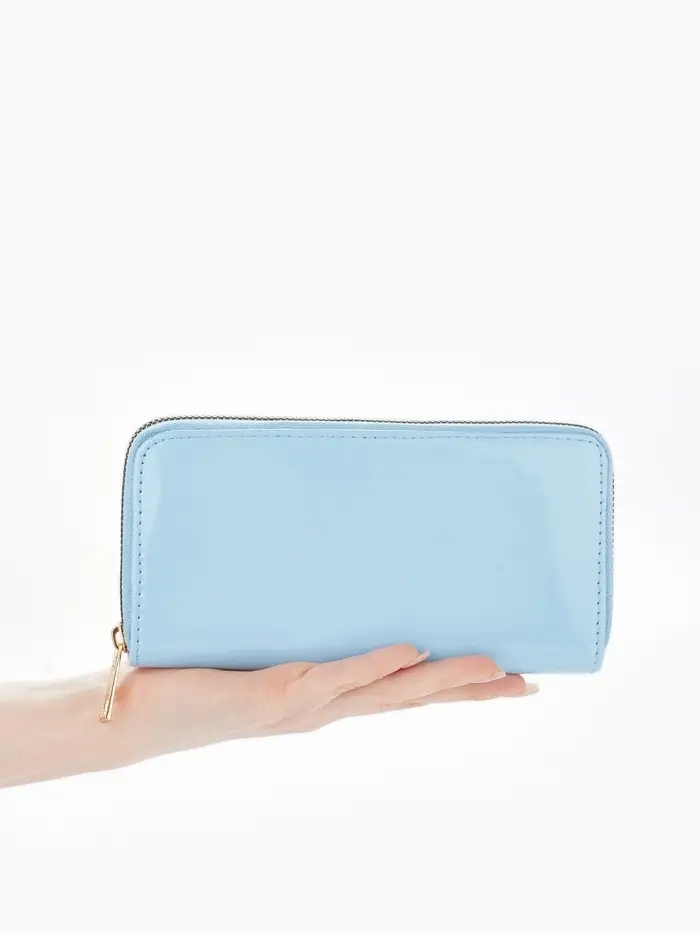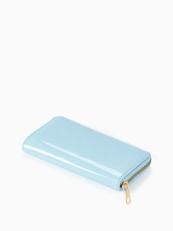 Этот женский лаковый кошелёк на молнии создаёт ощущение лёгкости в повседневном использовании. Нежный голубой цвет с глянцевым покрытием придаёт классическому дизайну свежесть и современное звучание.
