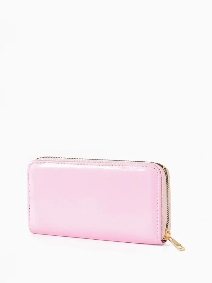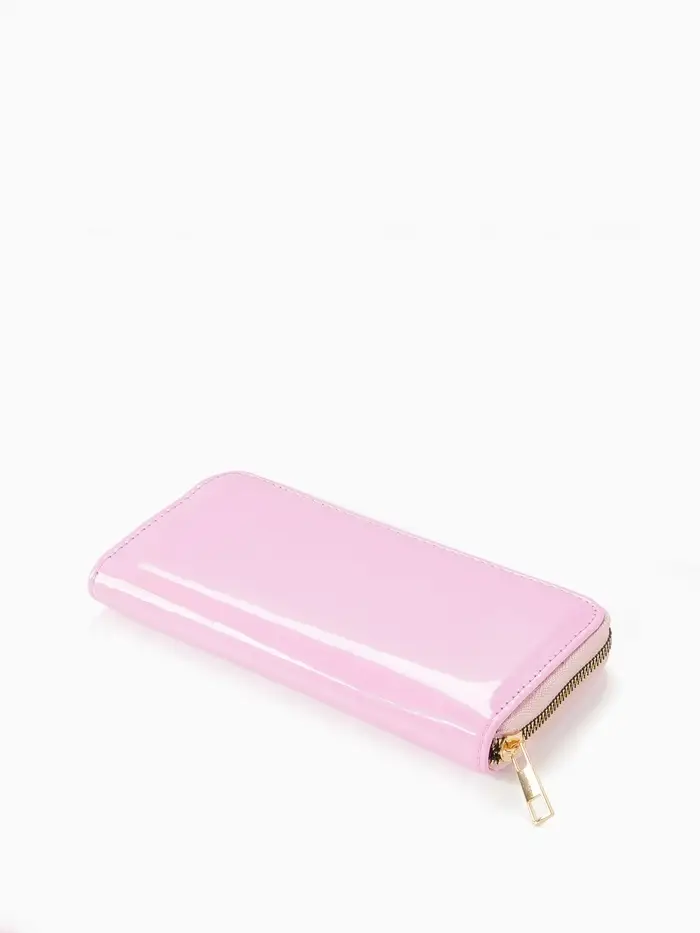 Этот женский лаковый кошелёк на молнии создаёт нежный акцент в повседневном использовании. Розовый цвет с глянцевым покрытием придаёт классическому дизайну теплоту и современную элегантность.