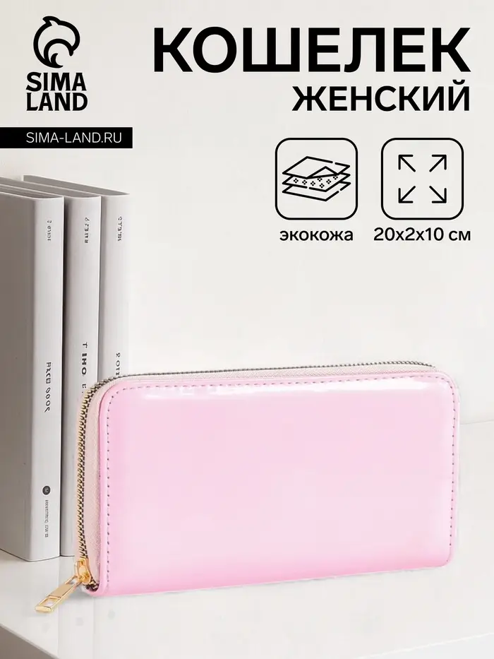 Кошелёк женский на молнии, 20×2×10 см, лаковый, розовый