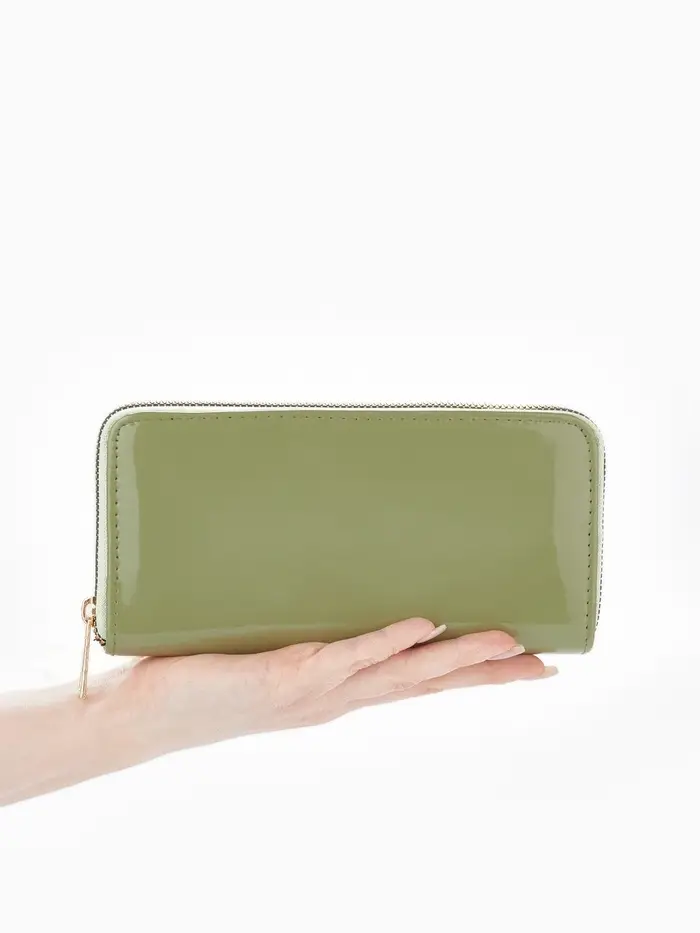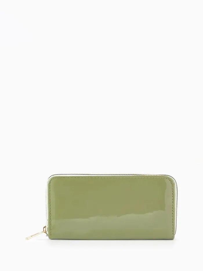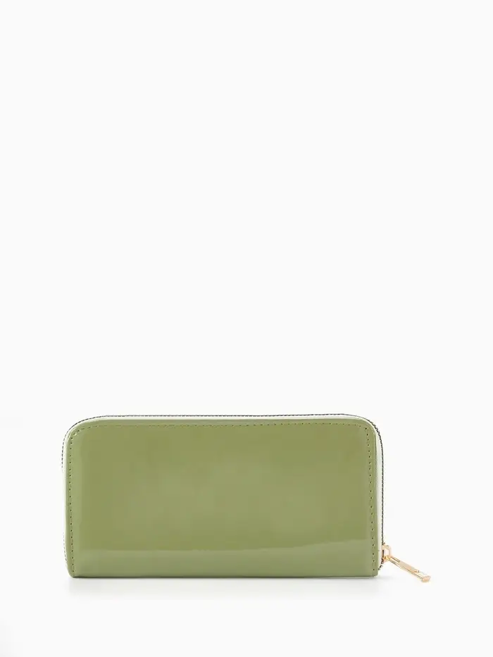 Этот женский лаковый кошелёк на молнии создаёт свежий акцент в повседневном использовании. Зелёный цвет с глянцевым покрытием придаёт классическому дизайну природную гармонию и современное звучание.