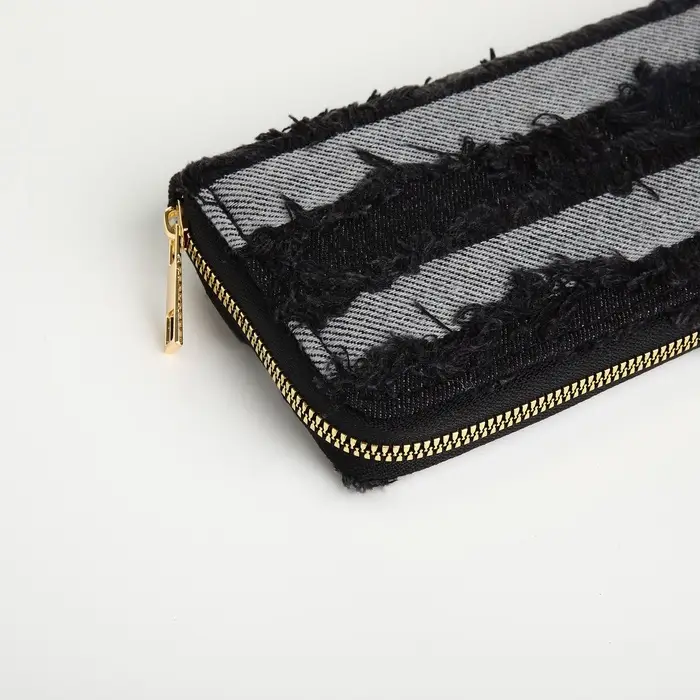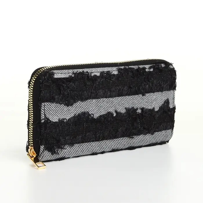 Кошелёк женский на молнии, 20×2×10 см, джинсовый, в полоску, чёрный