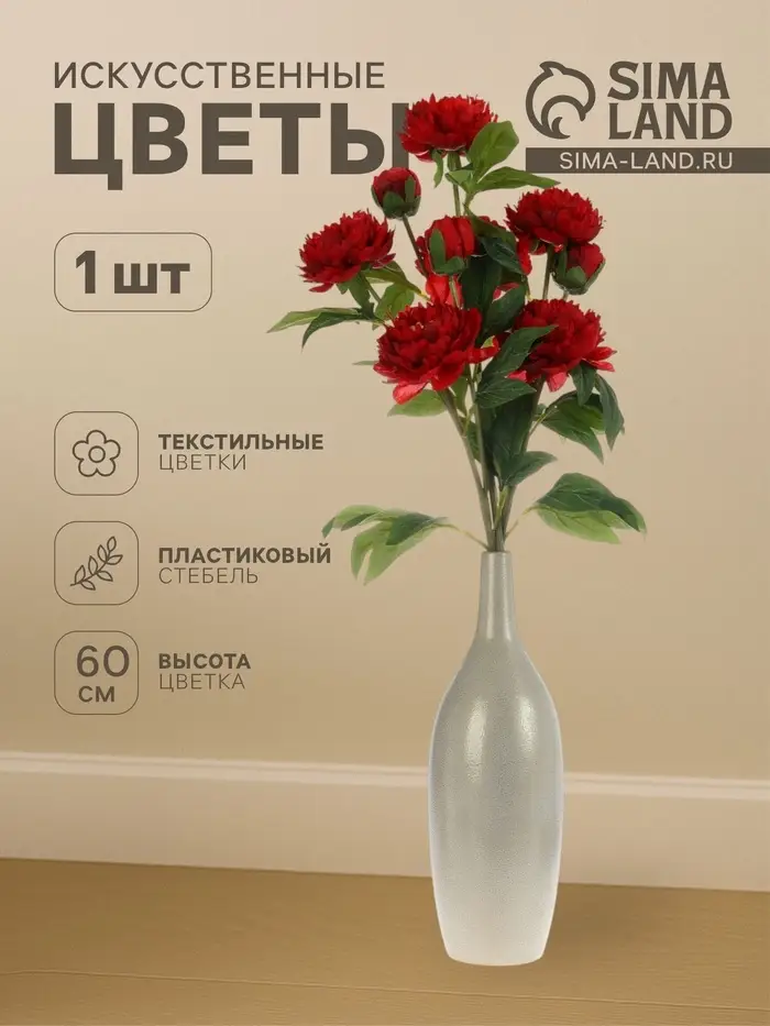 Добавьте яркие акценты в ваш интерьер! Искусственный красный пион высотой 60 см станет великолепным украшением для любого пространства. Эти цветы не только привлекают внимание, но и требуют минимального ухода, оставаясь свежими и красивыми на протяжении долгого времени.