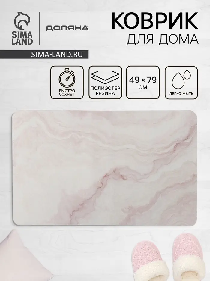Коврик для дома Доляна «Мрамор», влаговпитывающий, 49×79 см, розовый