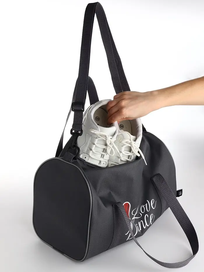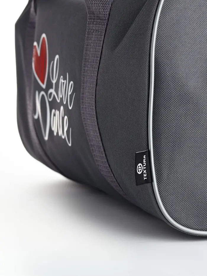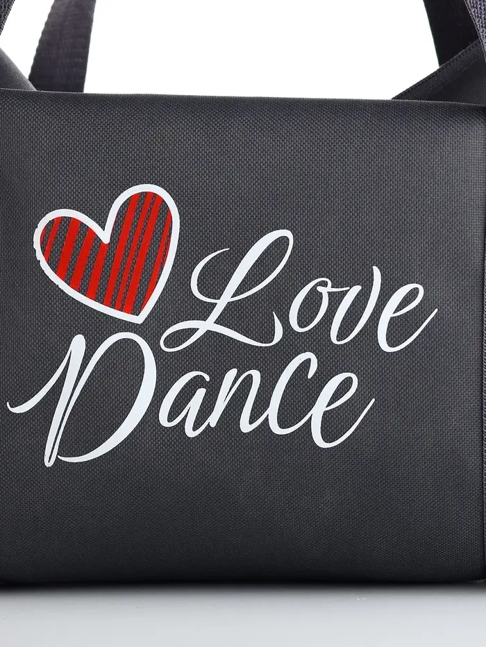 - Материал — прочный полиэстер с графичным принтом LOVE DANCE.
