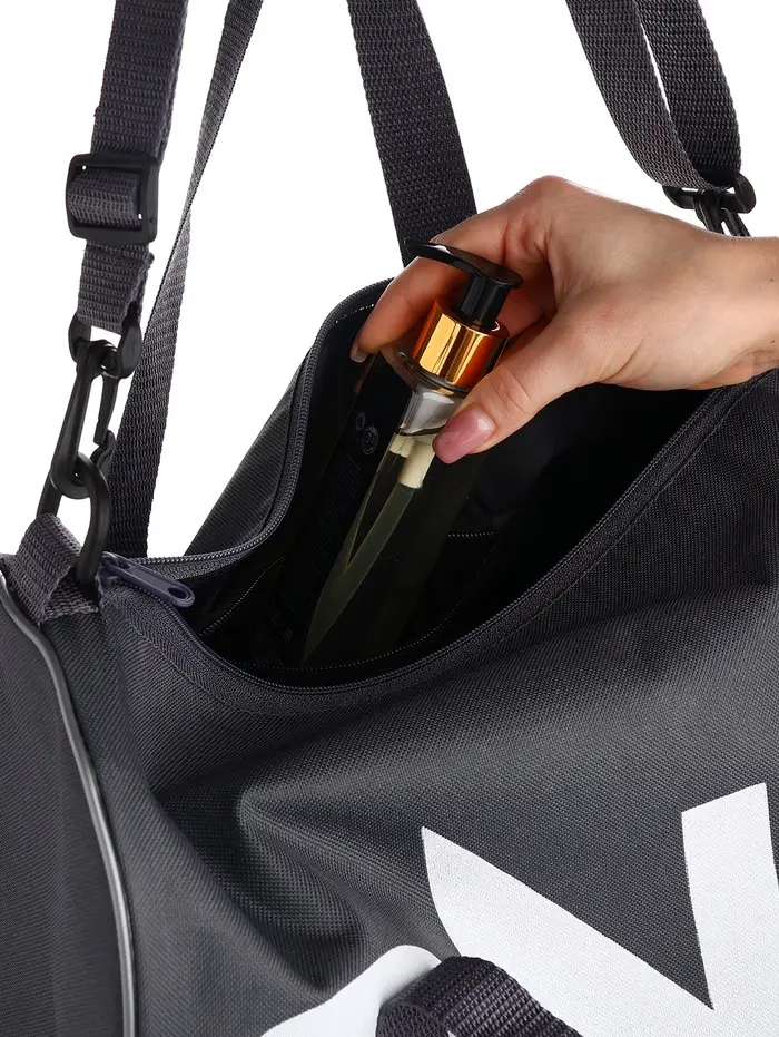 Эта серая спортивная сумка — ваш лёгкий и надёжный спутник для ежедневной активности. Компактный формат не обманывает: внутри поместится всё необходимое для тренировки, прогулки или работы. Прочный полиэстер с графичным принтом выглядит современно и стильно, подчёркивая индивидуальность без лишней вычурности.