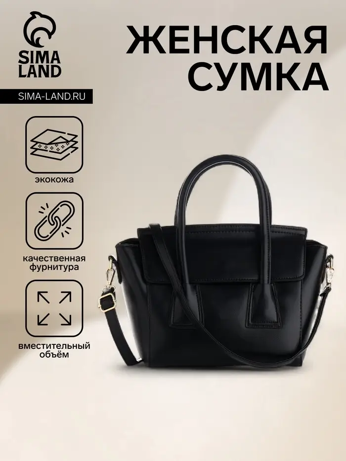 Сумка женская мессенджер на магните, 35×15×23 см, чёрная