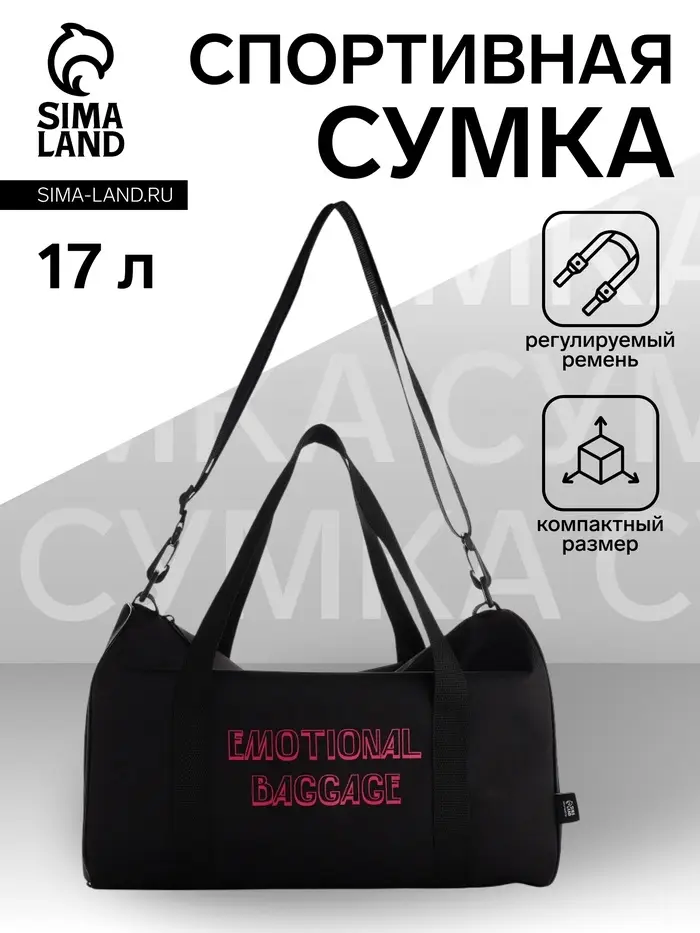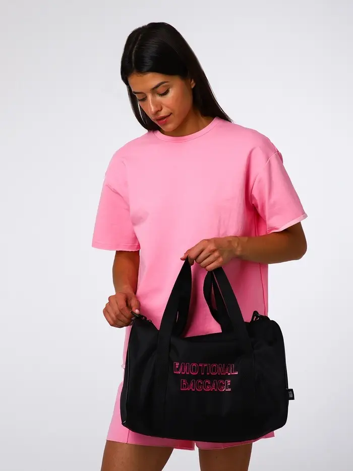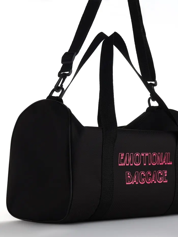 Чёрная спортивная сумка EMOTIONAL BAGGAGE — лёгкий и практичный спутник для ежедневной активности. Её компактный размер не обманывает: внутри поместится всё необходимое для тренировки, прогулки или поездки на работу. Длинный регулируемый ремень даёт свободу — носить через плечо или на манер почтальонки, подстраивая под себя.