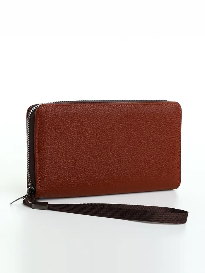 Портмоне-клатч мужской на молнии TEXTURA, коричневое