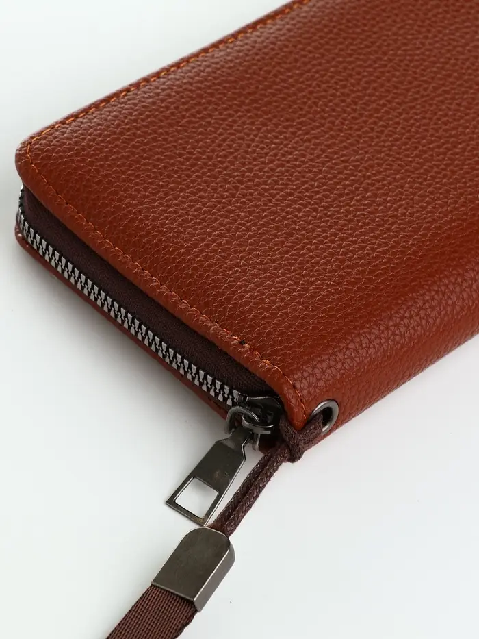 Этот мужской кошелёк на молнии создан для повседневного использования, когда важны порядок и быстрый доступ к необходимым вещам. Коричневый цвет и лаконичный дизайн делают его универсальным аксессуаром для разных ситуаций.