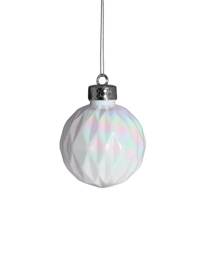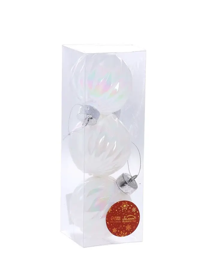 Ёлочные игрушки «Перелив», шары новогодние, d=8 см, набор 3 шт., грани, белый перламутр