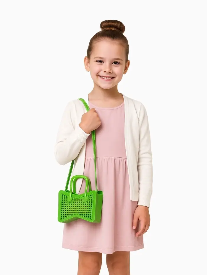 Маленькая помощница будет рада этой лёгкой сумочке. С ней так удобно собираться на прогулку — все нужные мелочи всегда под рукой. Практичный спутник для детских приключений и повседневных дел.