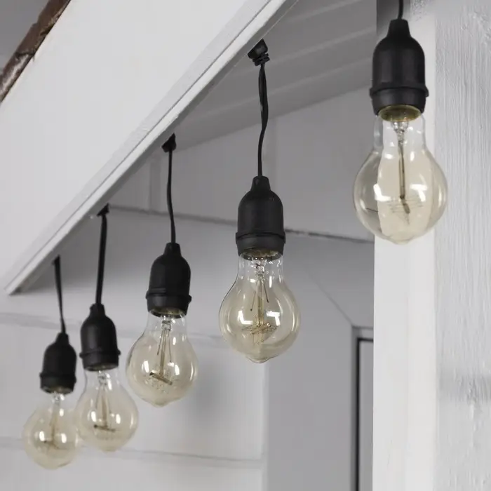 Гирлянда «Ретро белт-лайт» 10 м, IP54, УМС, тёмная нить, шаг 50 см, Е27 (без ламп), 220 В
