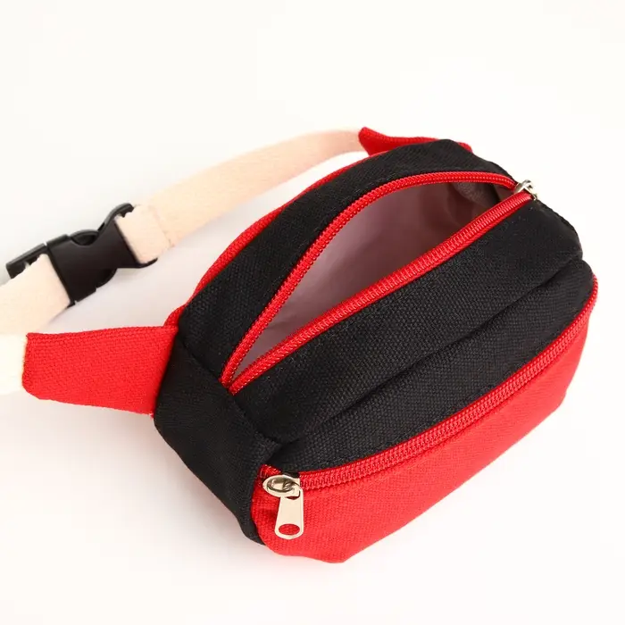 Сумка детская поясная на молнии, наружный карман, красная, чёрная